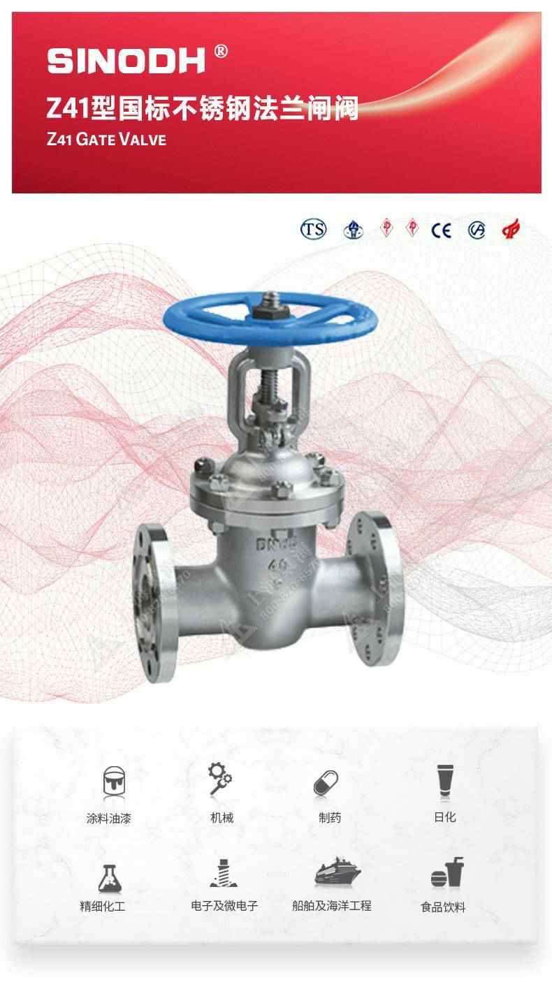 Z41型不锈钢闸阀,为开云手机在线登录官网入口-开云(中国)自主研发生产。本产品是一种最常见的启闭阀,利用闸板的上下工作来接通(全开)和截断(全关)管道中的流体介质。此类闸阀广泛用于自来水、污水、建筑、石油、化工、食品、医药、轻纺、电力、船舶、冶金、能源系统等体管线上作为调节和截流装置使用。